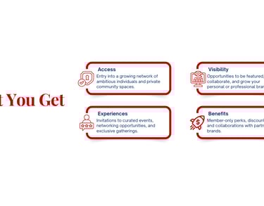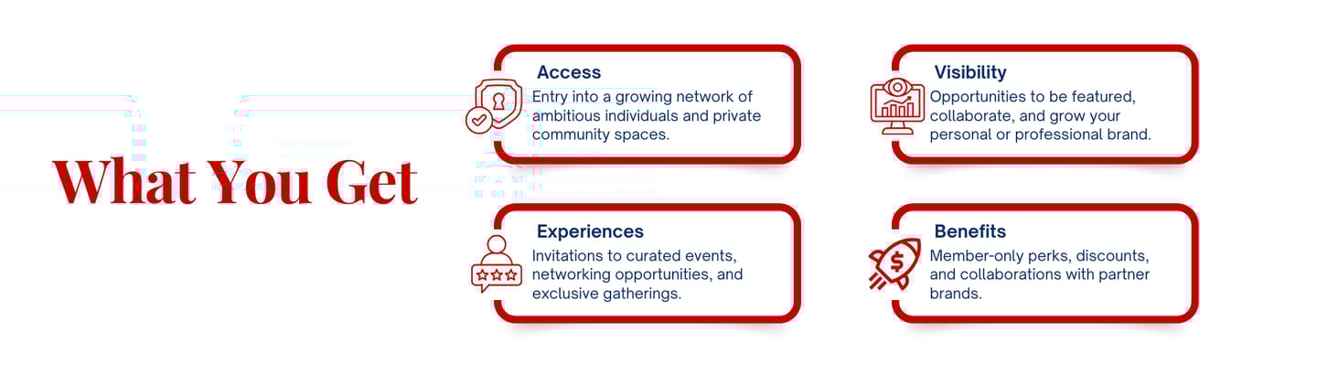 We are building a high-impact community that connects ambitious individuals through meaningful experiences, strategic collaborations, and platforms for visibility and growth.